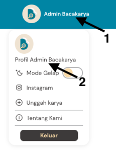 - Sebelum kamu bisa mengunggah karyamu, kamu perlu masuk atau mendaftar akun dulu di laman backarya dengan klik tombol “masuk” di pojok kanan atas pada halaman beranda.
