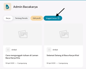 - Pada halaman profil, klik “unggah karya”, lalu isi formulir untuk mengunggah karyamu.